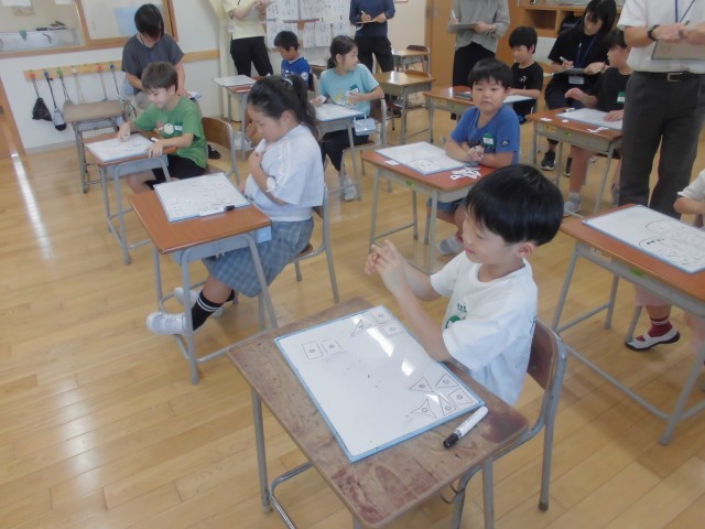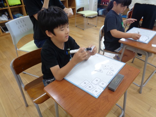 子供たちは挑戦状を受け、自分なりに根拠をもって図形を分類しました。