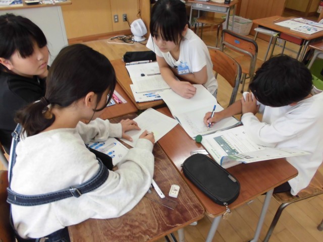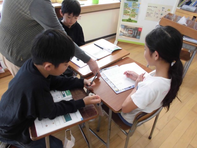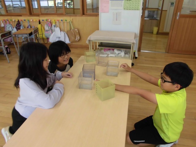 子供たちは、マスを使って、実際に水かさをはかってみたり、図にして表したりと様々な方法で考えました。