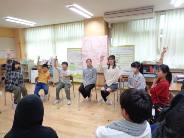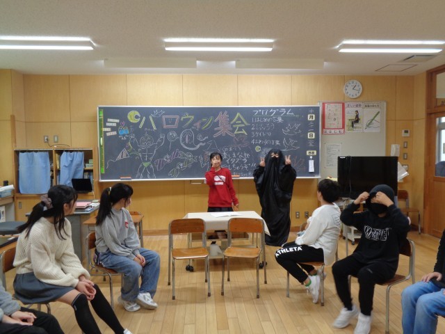 学級活動ではハロウィン集会を行いました。自分たちでアイディアを出し合い、計画することができました。とても盛り上がり、たくさんの笑顔が見られました。