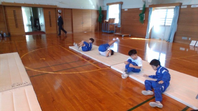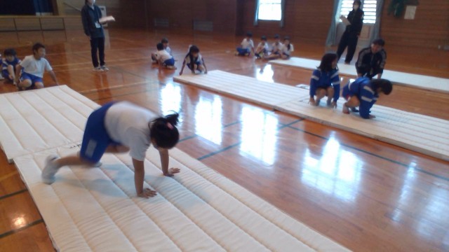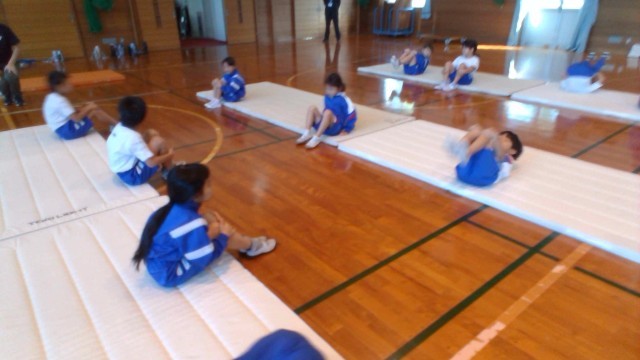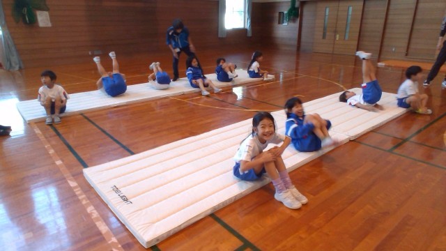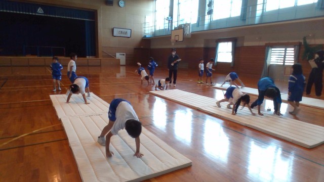 今日は、富山市スポーツ協会のスポーツ指導員の方によるマット教室がありました。