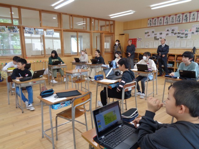 総合では「未来を守る、地域を守る」をテーマに、調べたことをまとめ、発表しました。一番伝えたいことが伝わるようにスライドを考えたり、説明の仕方を工夫したりしました。保護者の方に参観していただいて緊張気味の子供たちでしたが、落ち着いて発表することができました。授業を参観くださり、ありがとうございました。