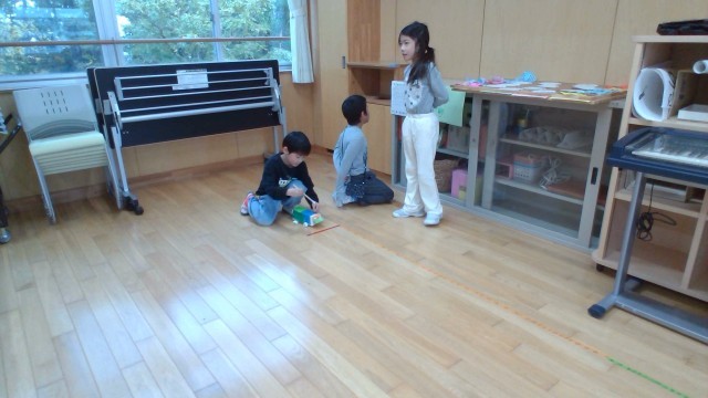 お店やさん役の子供は、ルールを説明したり、優しく遊び方を教えたりしました。