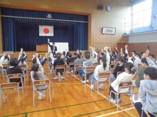 充実した冬休みにするために、5つの約束「ふ・ゆ・や・す・み」を確認しました。