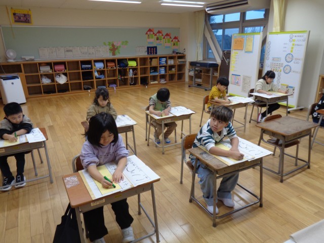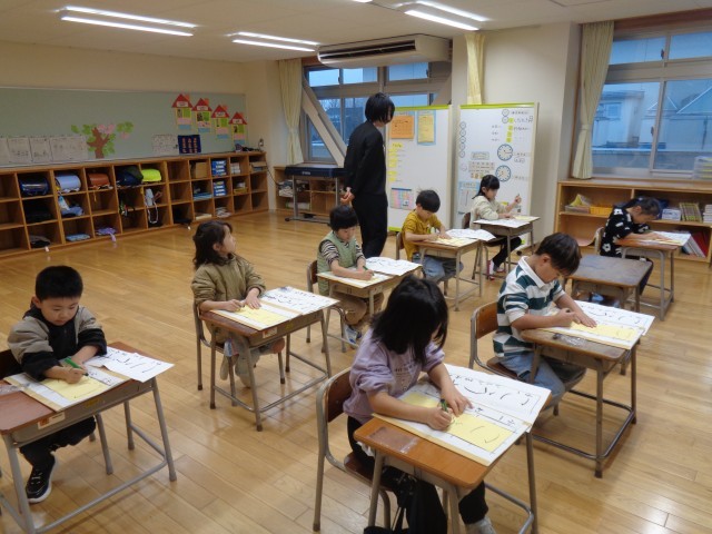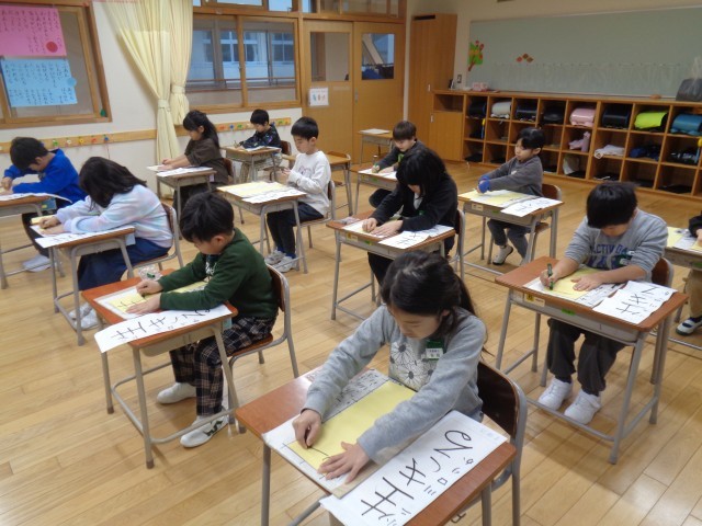 1・2年生の書き初め大会の様子です。