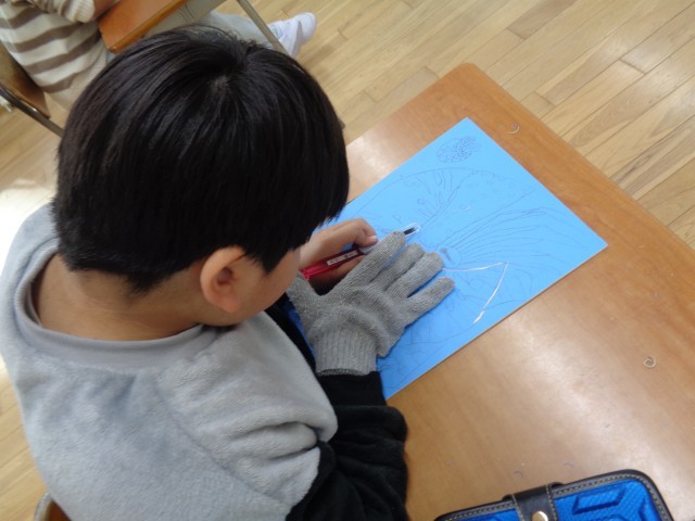 刃の向きや手の位置に気を付けながら、ていねいに彫りました。
