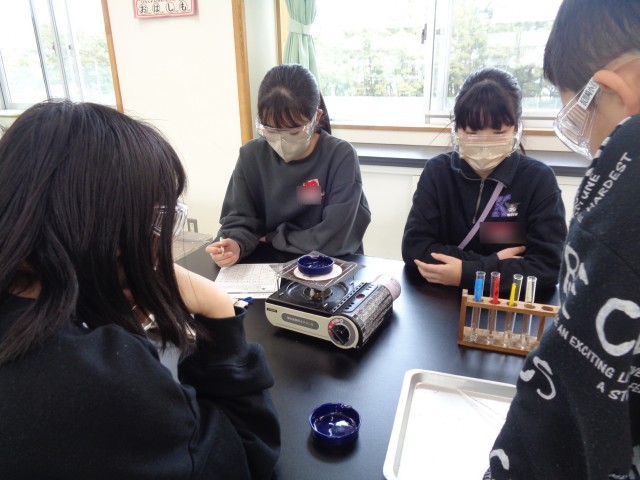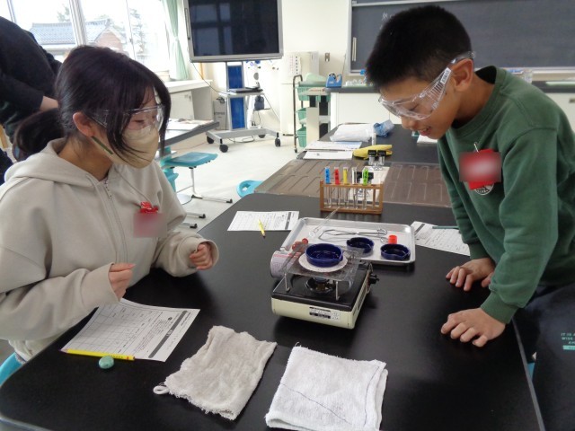 理科では、水溶液のちがいを調べました。においをかいだり、蒸発させたりして確かめました。