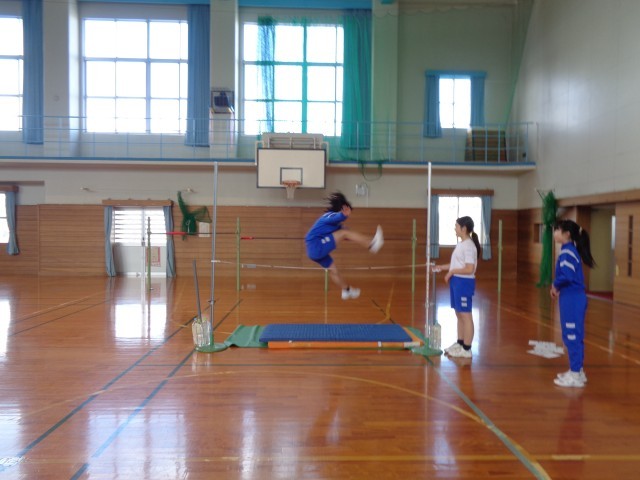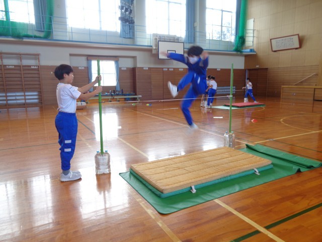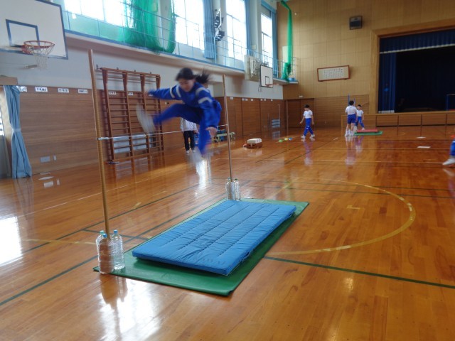 体育科では、「走り高跳び」をしました。自分の目標記録に向かって、リズミカルな助走を意識して取り組みました。記録を更新した時は、みんなで喜び合う姿が見られました。