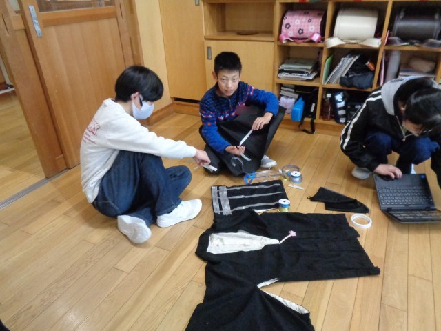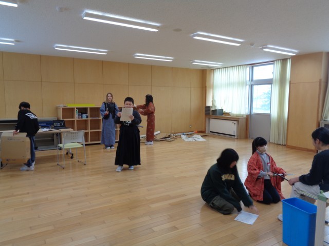学びの発表会の練習では、時代ごとに小道具をつくったり、せりふの練習をしたりしました。
