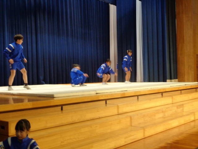2月14日(土) 3・4年生 学びの発表会(マット運動) 公開日 2026/02/14 更新日 2026/02/14 4年生 +6 マット運動では、これまでに習得した基本的な回転技に加え、指先まで意識した静止姿勢など、美しさを追究した演技を披露しました。一人一人が自分の得意な技を組み合わせたり、全員で息を揃えたりして、堂々と演技をしました。