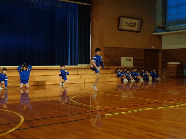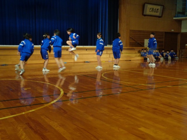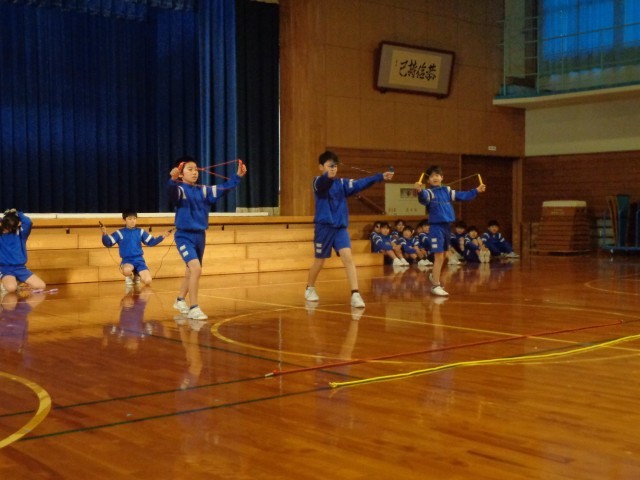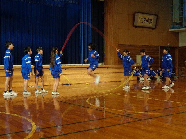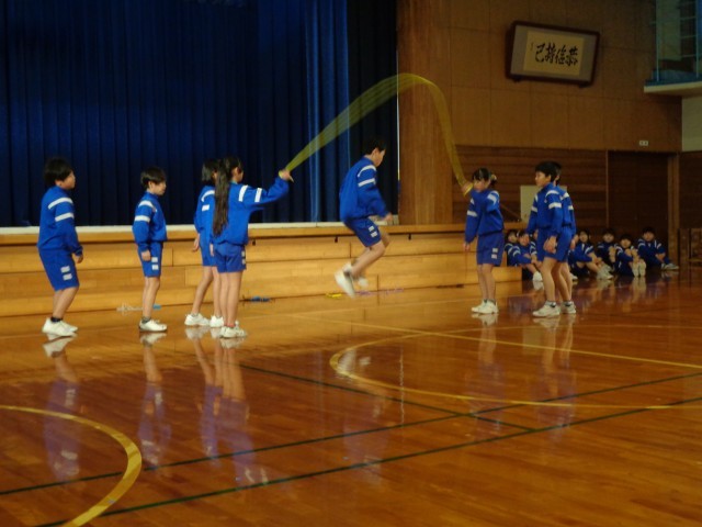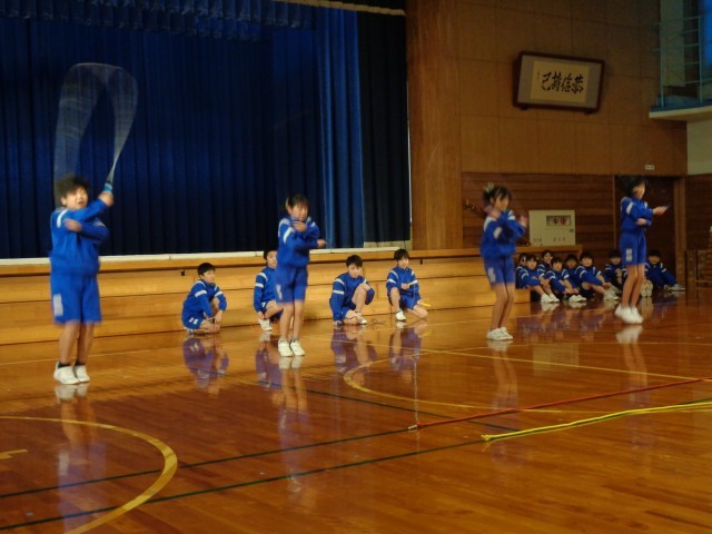 縄を使った運動では、それぞれの技が光る短縄と、チームの団結力が問われる長縄で発表を行いました。
