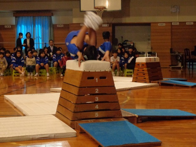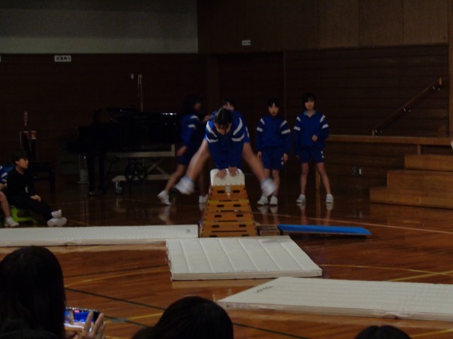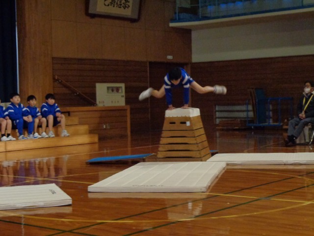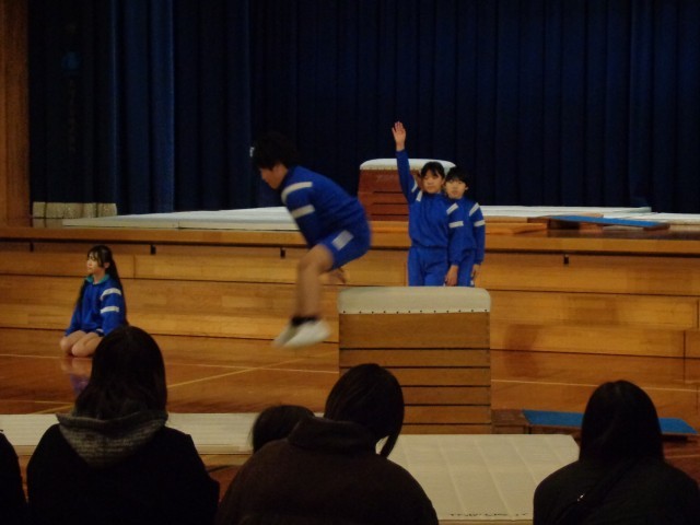 2月14日(土) 3・4年生 学びの発表会(跳び箱運動) 公開日 2026/02/14 更新日 2026/02/14 4年生 +7 跳び箱運動では、助走の勢いを力強い踏み切りへと繋げ、ダイナミックな跳躍からの様々な技を披露しました。高い段数にも臆することなく挑み、着地まで集中を切らさない真剣な眼差しからは、この一年間の成長が強く感じられました。