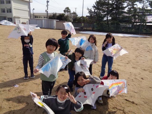 生活科では、凧に好きな絵を描き、凧あげをしました。
