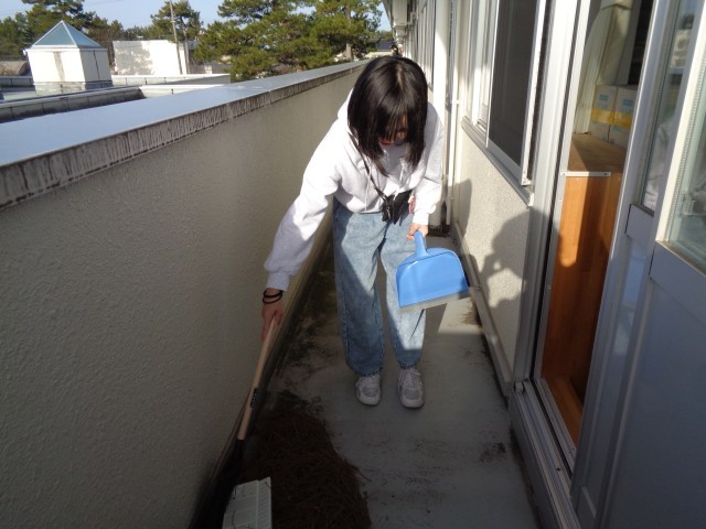 卒業プロジェクトの一つの活動として、校舎の清掃を行いました。「6年間お世話になった校舎に感謝の気持ちを込めて掃除をしよう」と目当てを立てて取り組んでいる子供たち。今週はベランダ清掃をしています。落ちている松葉を取ったり、汚れた手すりを拭いたりと、進んで活動しました。