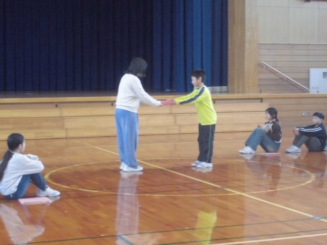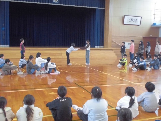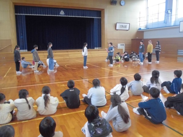 体育館に全校児童が集まり、児童会(委員会)引き継ぎ式を行いました。