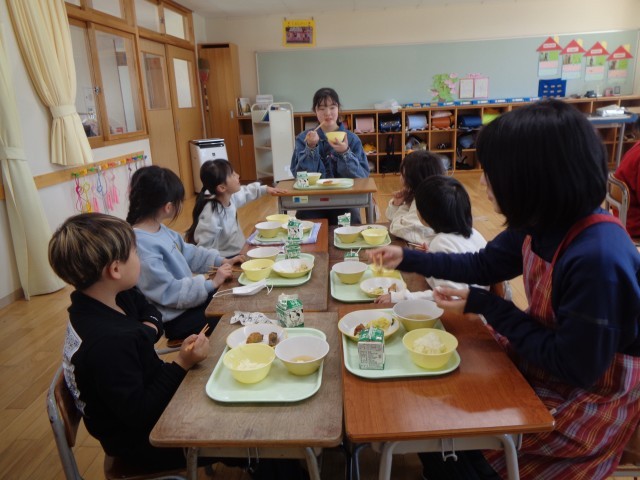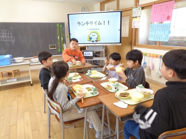 また、下級生に感謝を伝えるために、「突撃!サンキューランチ」と題して、給食を一緒に食べました。