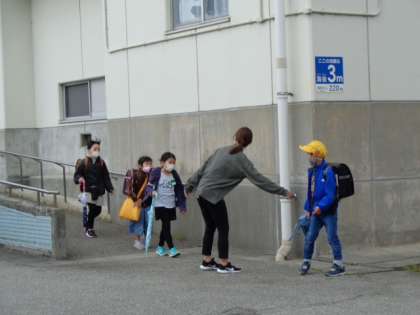 下校時も平均約10mもの風が吹いているとのことでしたので、教員も分担してそれぞれの通学路を子供たちと一緒に歩き、安全確認しながら下校しました。