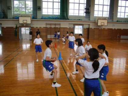 体育ではタグラグビーをしています。今日は初めて、3対2のゲーム形式で練習しました。相手にタグをとられないようにして、ボールをゴールまでもっていくにはどうしたらよいか考え、声をかける姿も見られました。みんな生き生きと楽しんで活動しています。