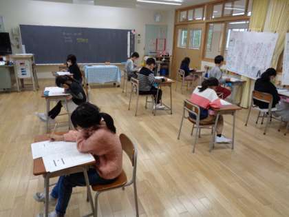 3年生から6年生は県小教研学力調査の2日目です。
