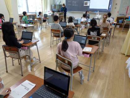 4年生は、パソコン(クロムブック)を使って自己紹介をしていました。