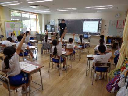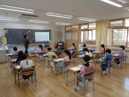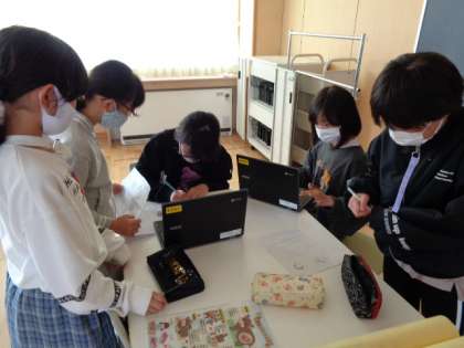 6年生は、運動会の応援について団ごとに分かれて話し合っていました。