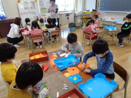 図工では、はさみを上手に使っておりがみを切っていました。