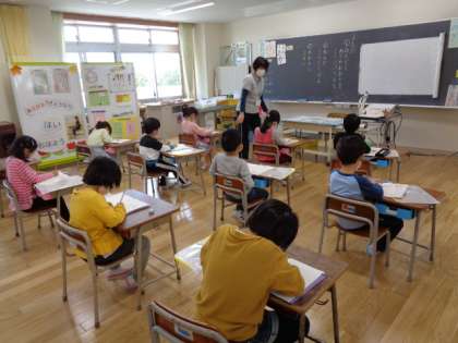 1年生は、図工と国語の授業風景です。