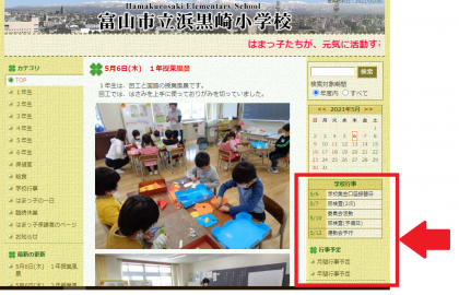 本ホームページの右側には、今後の予定や月予定をご覧いただけるコーナーがあります。どうぞご利用ください。