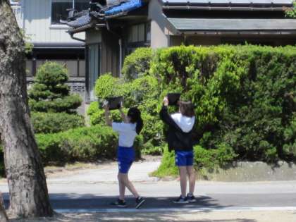 5年生は、クロムブックで雲の写真を撮りながら、観察をしていました。