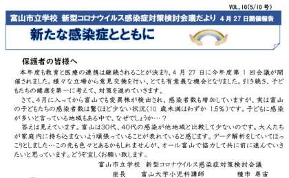 富山市立学校 新型コロナウイルス感染症対策検討会議が発行しているだよりの最新号( V0L.10)が発行されました。