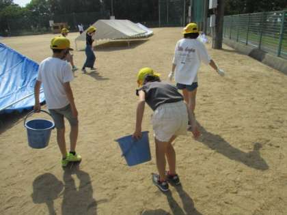 重いテントを友達と協力して運んだり、石拾いをしたり、担当の係の最終打合わせをしたりしました。積極的に動き、準備を進める子供たちを頼もしく思います。明日の運動会での活躍も楽しみです。