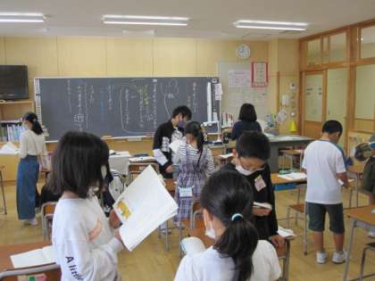 4年生、5年生は国語。5年生はそれぞれが音読をしていました。
