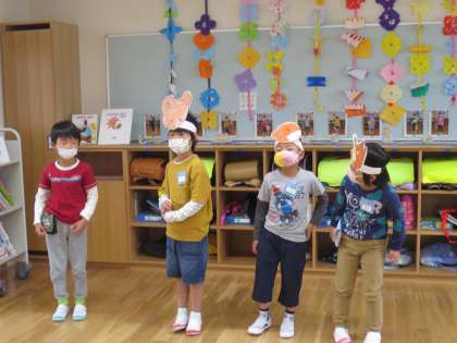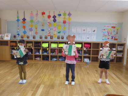今日は、音読発表会をしました。それぞれの役を決めて、本文と自分で考えた言葉を合わせて読みました。動物同士の会話が楽しそうでした。