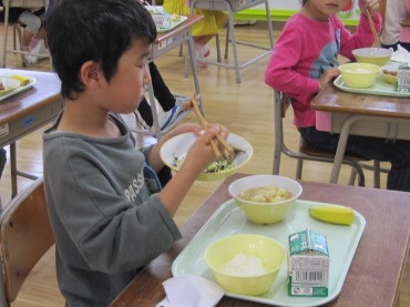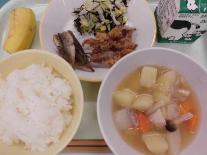 今日の給食には、水橋漁民合同組合さんからいただいたホタルイカのフリッターがついていました。富山ならではですね。