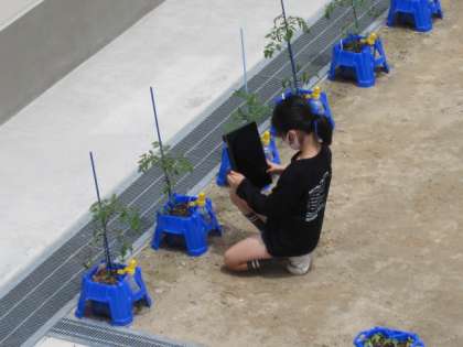2年生は、野菜の成長を記録するためにクロムブックで撮影していました。