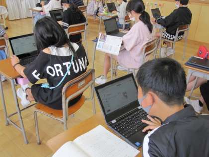 6年生は、クロムブックを使って社会の調べ学習をしていました。