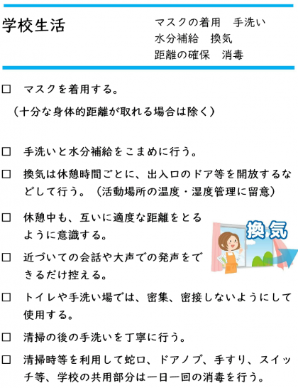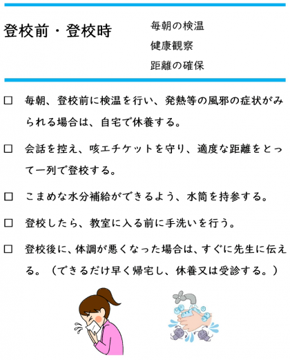 新型コロナウイルス感染症対策について(登校前・登校時、学校生活)