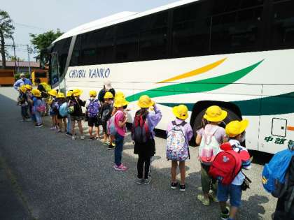 1・2年生はバスに乗り、9時30分、ファミリーパークに向かって出発しました。