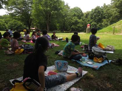 動物をたくさん見た子供たちは、待ちに待ったお弁当をとってもおいしそうに食べていました。