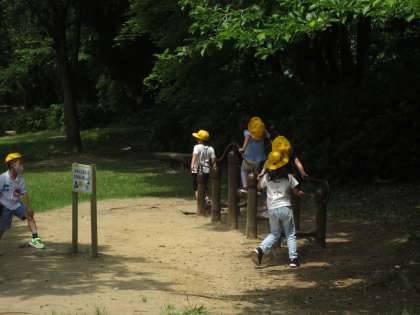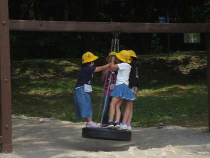 お弁当を食べた後は、友達と一緒に遊具で仲よく遊んでいました。