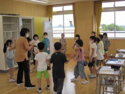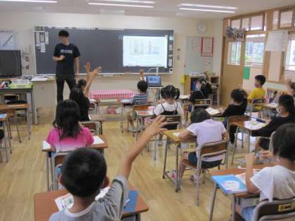 2年生は音楽で2拍子をかんじとる学習、3年生は、長さを測る学習です。6年生は書写をしていました。