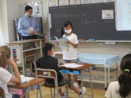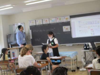 4年生は、外国語で曜日について学習しています。「What day do you like?」と尋ね、「I like ○○」と答えています。曜日の歌を歌ったり、友達に英語で質問したりして、外国語を楽しんでいます。