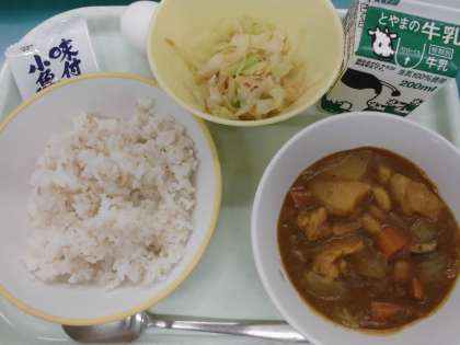 今日は、カミカミメニューでした。いつものカレーではなく、ゴボウやエリンギが入っていて変わっていました。インゲン豆がかたくて、歯ごたえもあり、よく噛んで食べました。