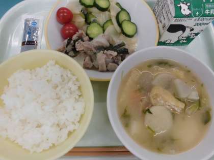 今日のごはんには、のせて食べるものがいろいろあってあっという間になくなってしまいました。「肉のやつ(豚肉の塩麹炒め)がおいしかったね」と子供たちが話していました。