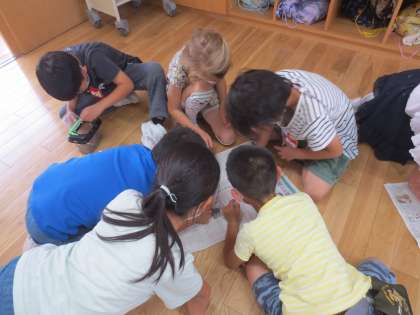 今日は、ダンゴムシがえさを食べるところを観察したり、虫かごの中を住みやすくととのえたり、図書室で生き物の飼い方を調べたりなど、自分で決めた活動に取り組みました。