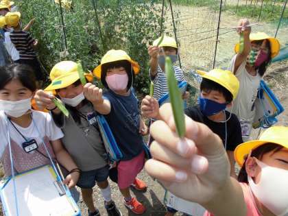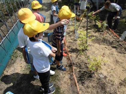 3年生は地域に住んでおられる方のおうちを訪問し、畑を見せてもらいました。子供たちはいろいろな工夫を見つけたり、教えていただいたり、楽しく見学させていただきました。