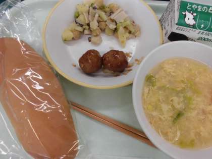 卵とレタスのスープには、トマトも入っていて、赤・黄・緑と彩りのよいおいしいスープでした。