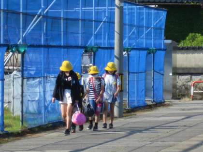 登下校時は、マスクを外して登校するように指導していますが、子供たちは逆になかなか外せないようです。