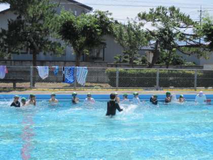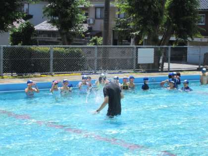 水に慣れるため、水中じゃんけんなどに挑戦していました。