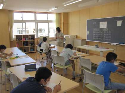 算数は少人数に分かれて授業を行っています。合同な図形を学習していました。