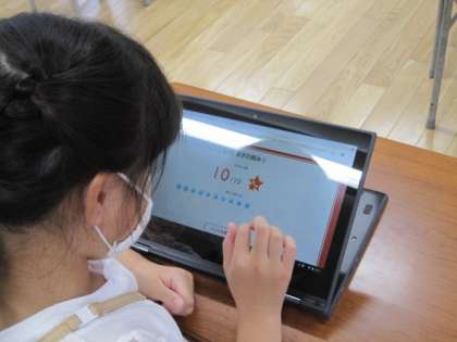 朝の教室をのぞいてみると、今日から使用できるようになったクラウドドリルに4年生が挑戦していました。